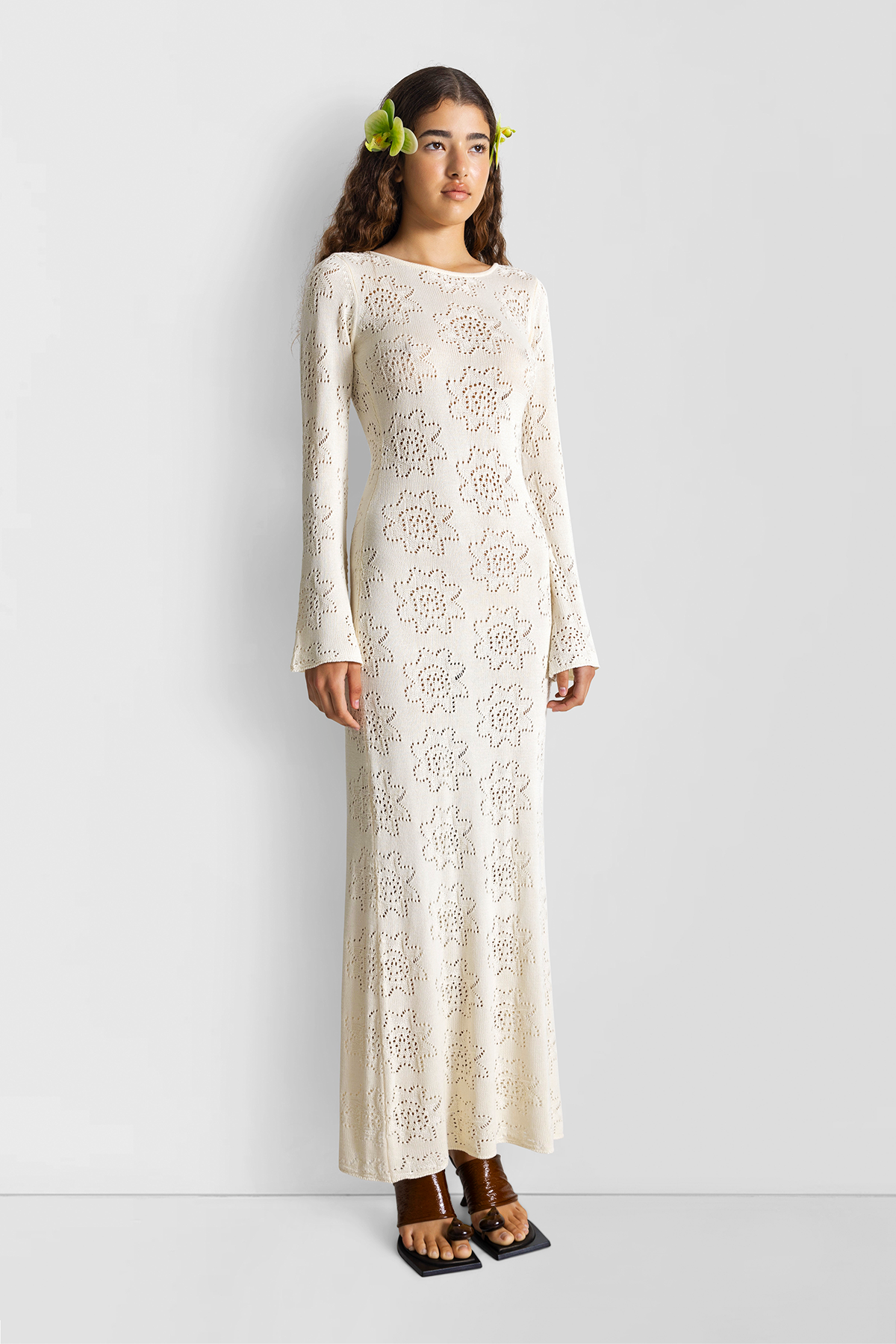 Das Maxikleid Bettina besteht aus einem weichen, dehnbaren Strickstoff, der elegant über den Körper fällt und Ihre Silhouette mit einer schmeichelhaften Passform betont. Mit seinen langen Glockenärmeln und dem umwerfenden, runden Rückenausschnitt bietet dieses Kleid sowohl Komfort als auch Stil.
