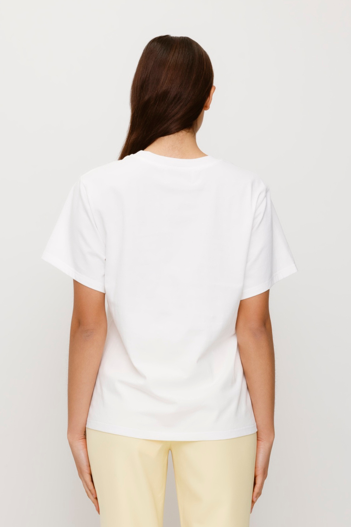 Veredeln Sie Ihren Alltagslook mit dem Kora T-Shirt. Es besteht aus weicher, atmungsaktiver 100 % Baumwolle und besticht durch ein individuelles, abstraktes TWG-Design mit Perlenstickerei. Kombinieren Sie es mit unserer Irida Hose für einen bürotauglichen Look oder tragen Sie es lässig mit Leggings.