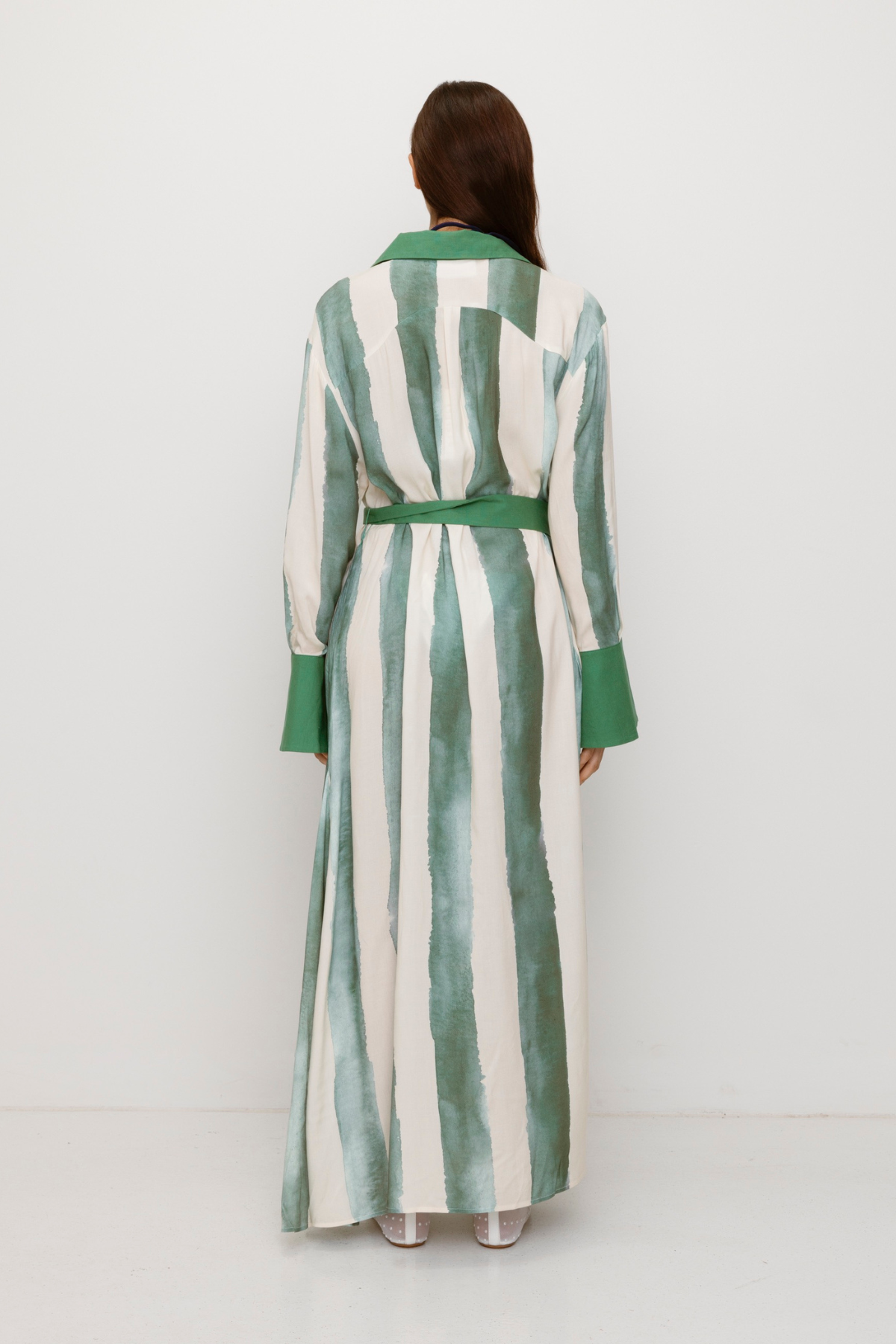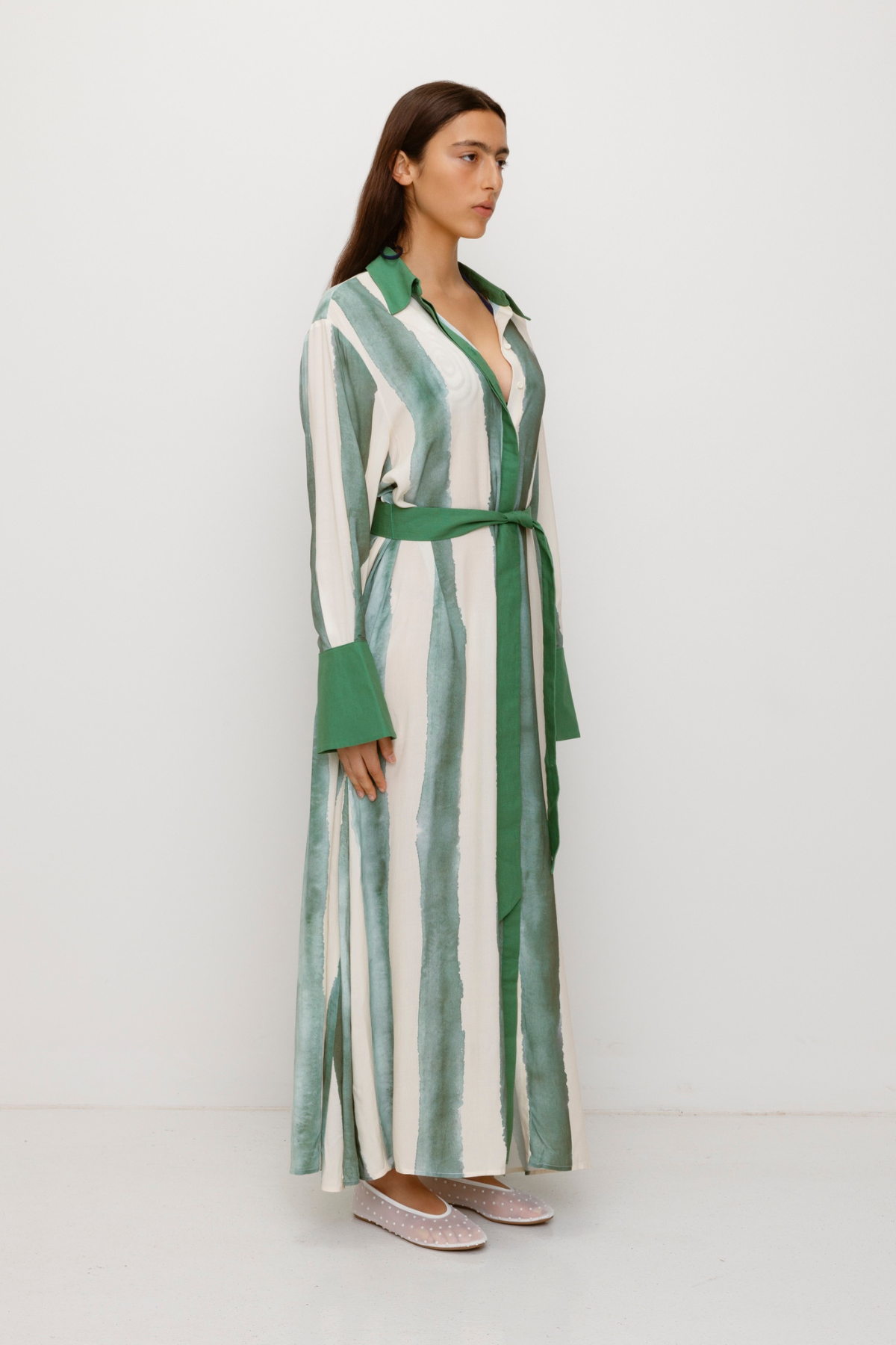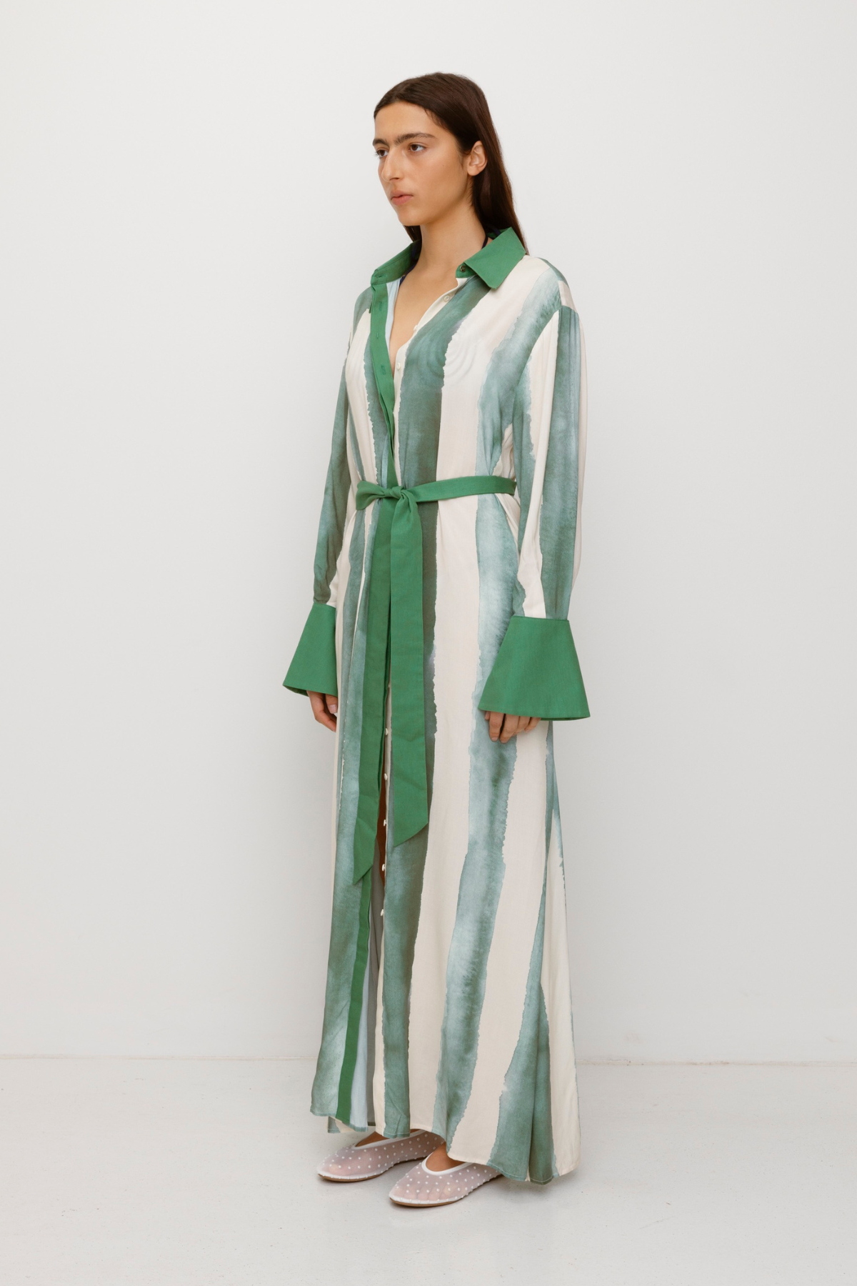 Das Lua Cover Up wird garantiert zu Ihrem unverzichtbaren Langarm-Sommerkleid. Dieses ätherische Maxikleid ist wunderschön verarbeitet mit einer abnehmbaren Schleife in der Taille, kontrastierenden Einsätzen und zarten Godets entlang der Seitennähte. So entsteht eine Silhouette, die bei jedem Schritt anmutig fließt.